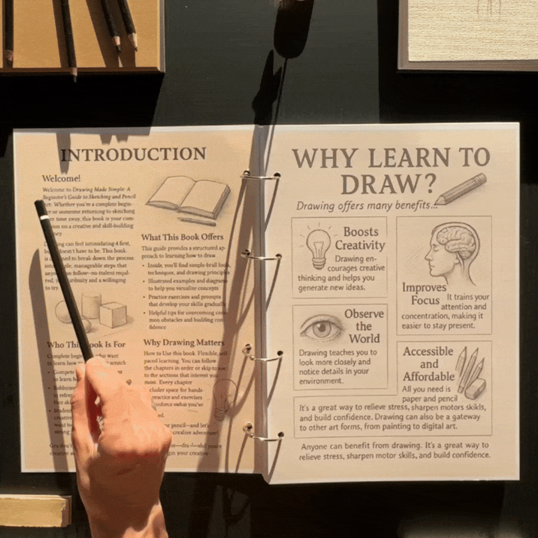 From basic sketching techniques to more advanced drawing skills, this bundle has a guide for every stage of your artistic journey. It's all in one place, beautifully organized, and ready whenever creativity strikes!